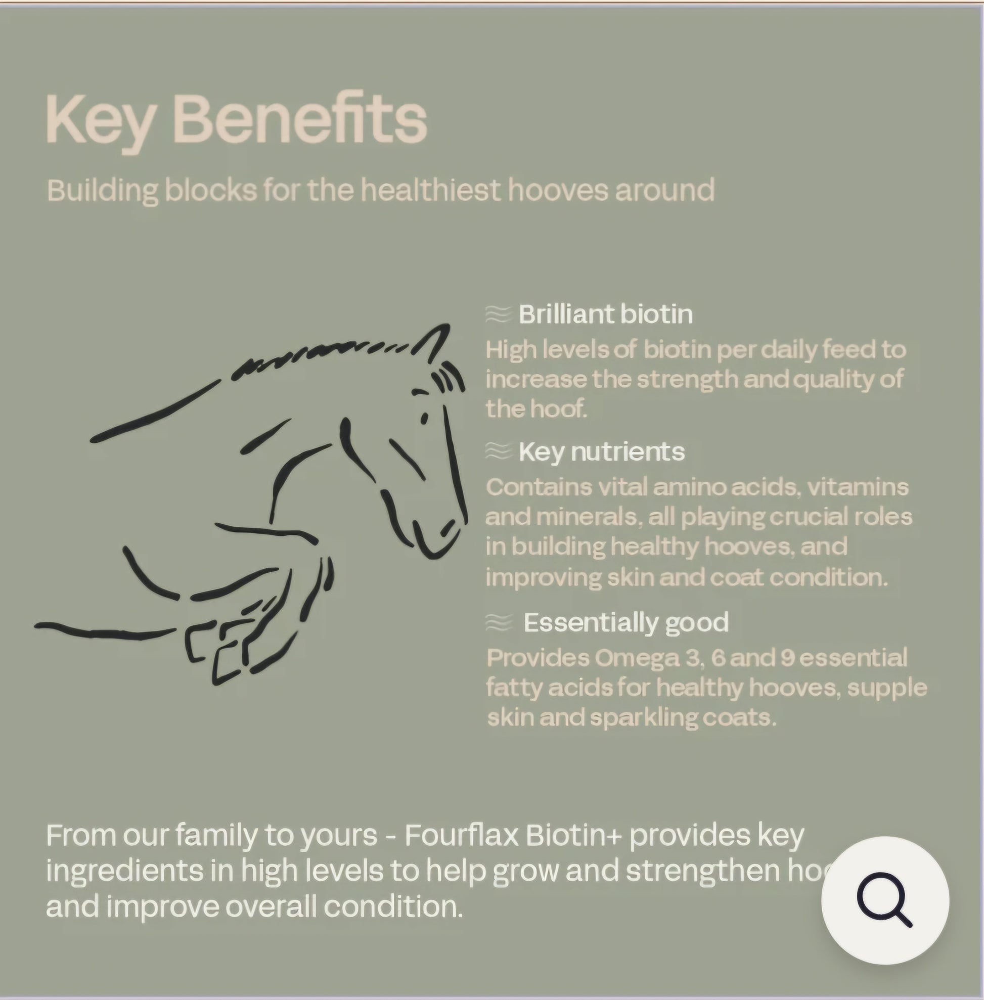 Fourflax Biotin provides key ingredients in high levels to help grow and strengthen hooves and improve overall condition.