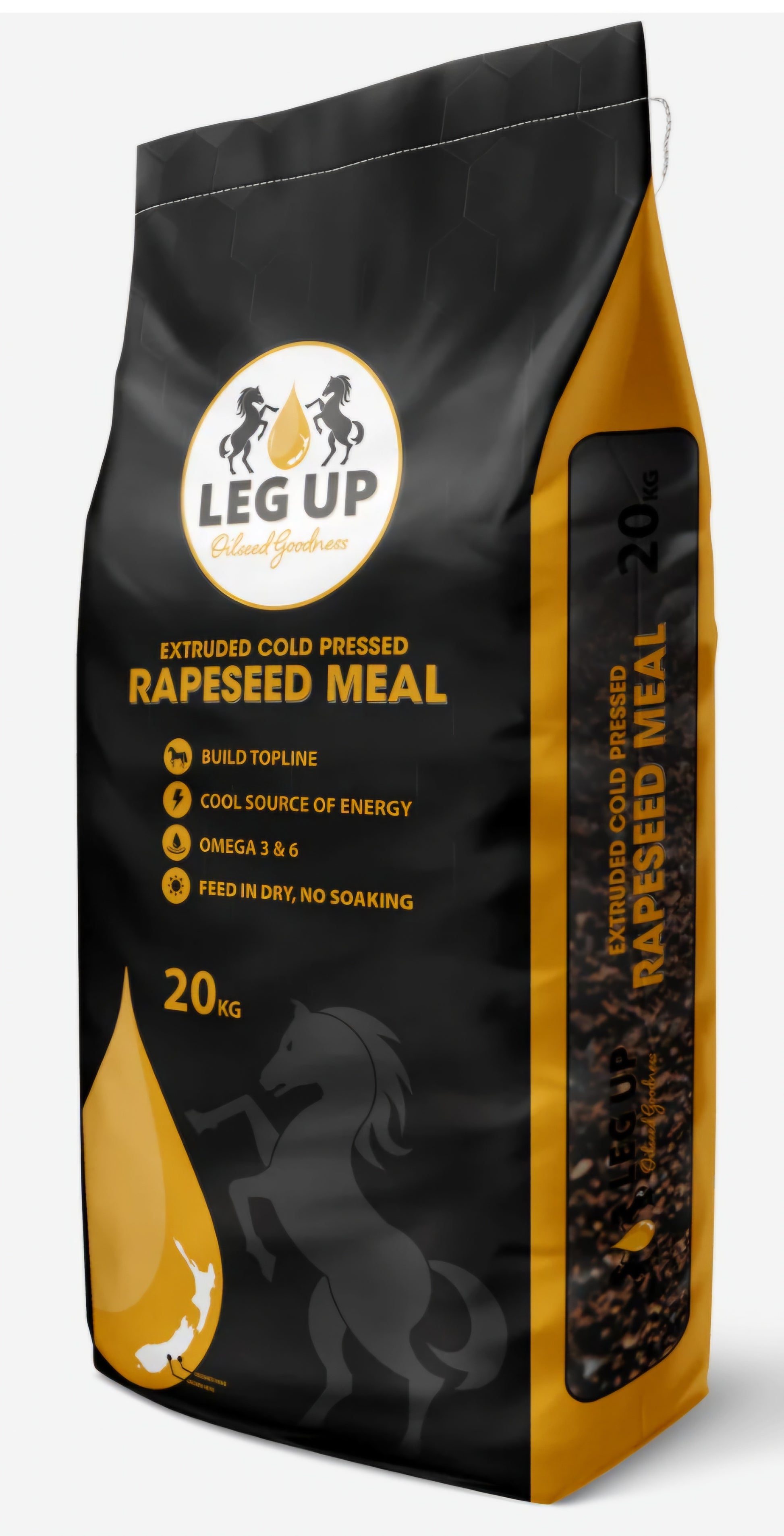 Leg Up Extruded Meal contains New Zealand grown GE free rapeseed. This product has been cold pressed without the use of heat or chemicals, to ensure all nutritional benefits are retained. The meal is then extruded to improve the digestion of the product for the horse and to improve the palatability. Leg Up Extruded Meal is not a complete feed and therefore should applied into a balanced diet.