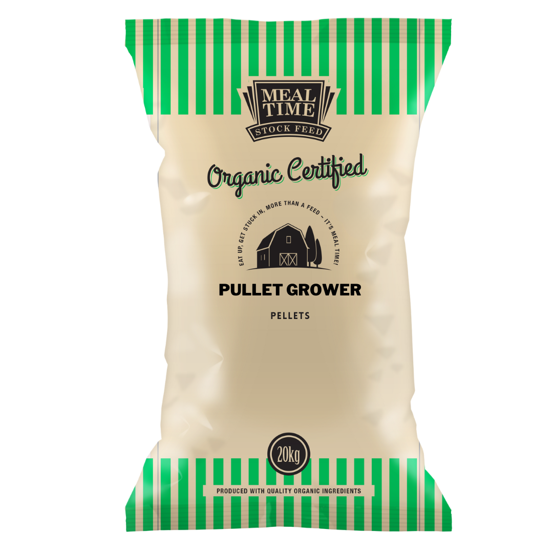 • Organic Certified Pullet Grower Pellets ad-lib from 6-8 weeks.